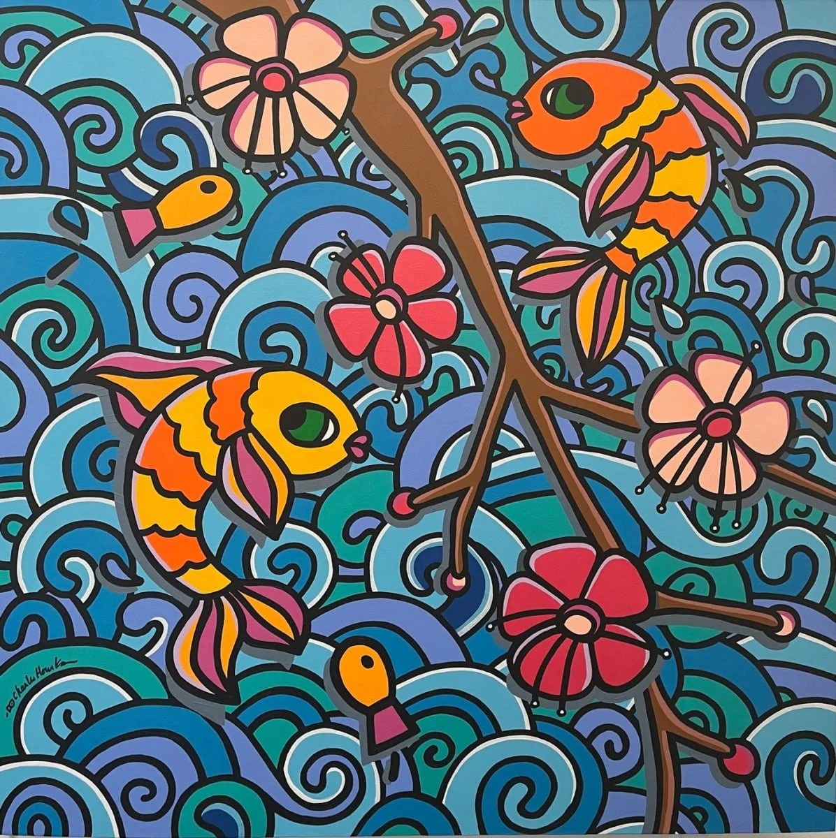 In addition to his paintings on canvas, Houska is known for larger works including murals and billboards. His graphics have appeared in a variety of forms, including credit cards, city mass transit buses, and even an Illinois license plate. Notable commissions from local and national clientele include major corporations: St. Louis Metro, St. Louis Children’s Hospital, Herman Miller HQ, Absolut Vodka, and BoS Bank of Springfield. Houska also markets a line of collectible merchandise in his online store, houskastore.com.